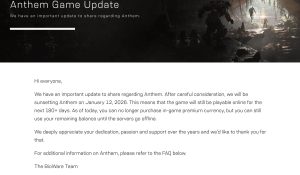 Anthem, BioWare’s looter-shooter published by EA, is officially shutting down its services in early 2026.