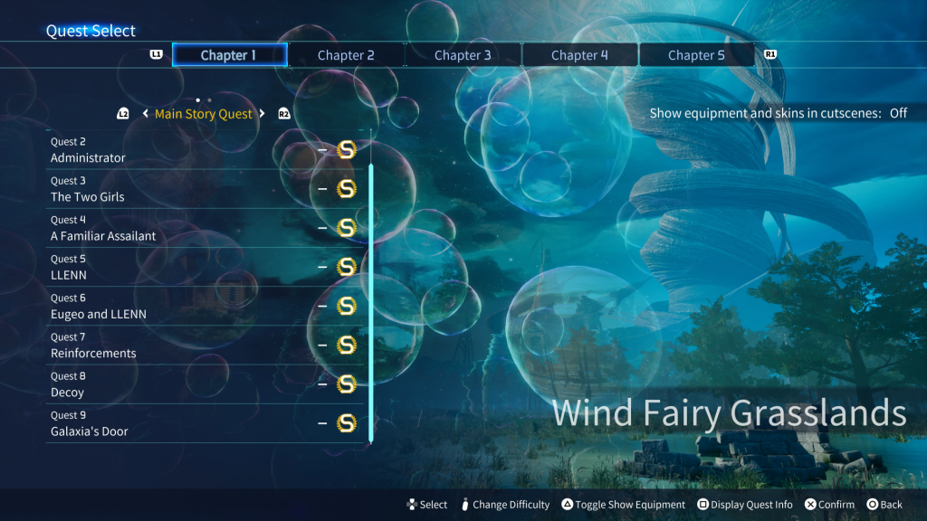 The Story mode consists of a total of 5 chapters, with several Main quests & Side Quests in each chapter for you to clear.